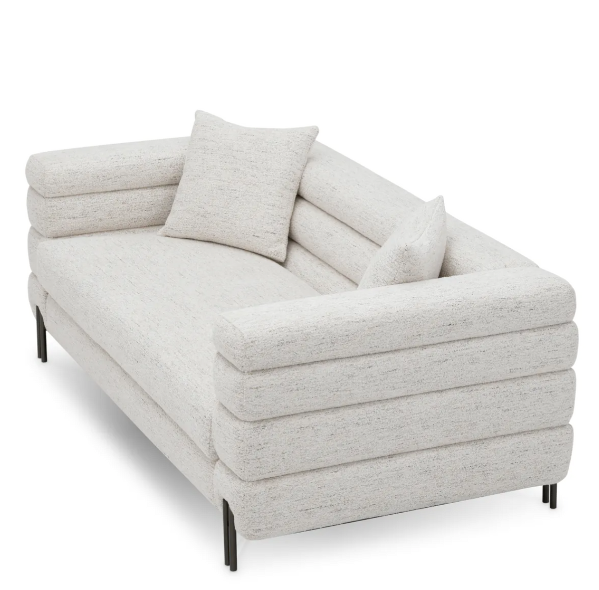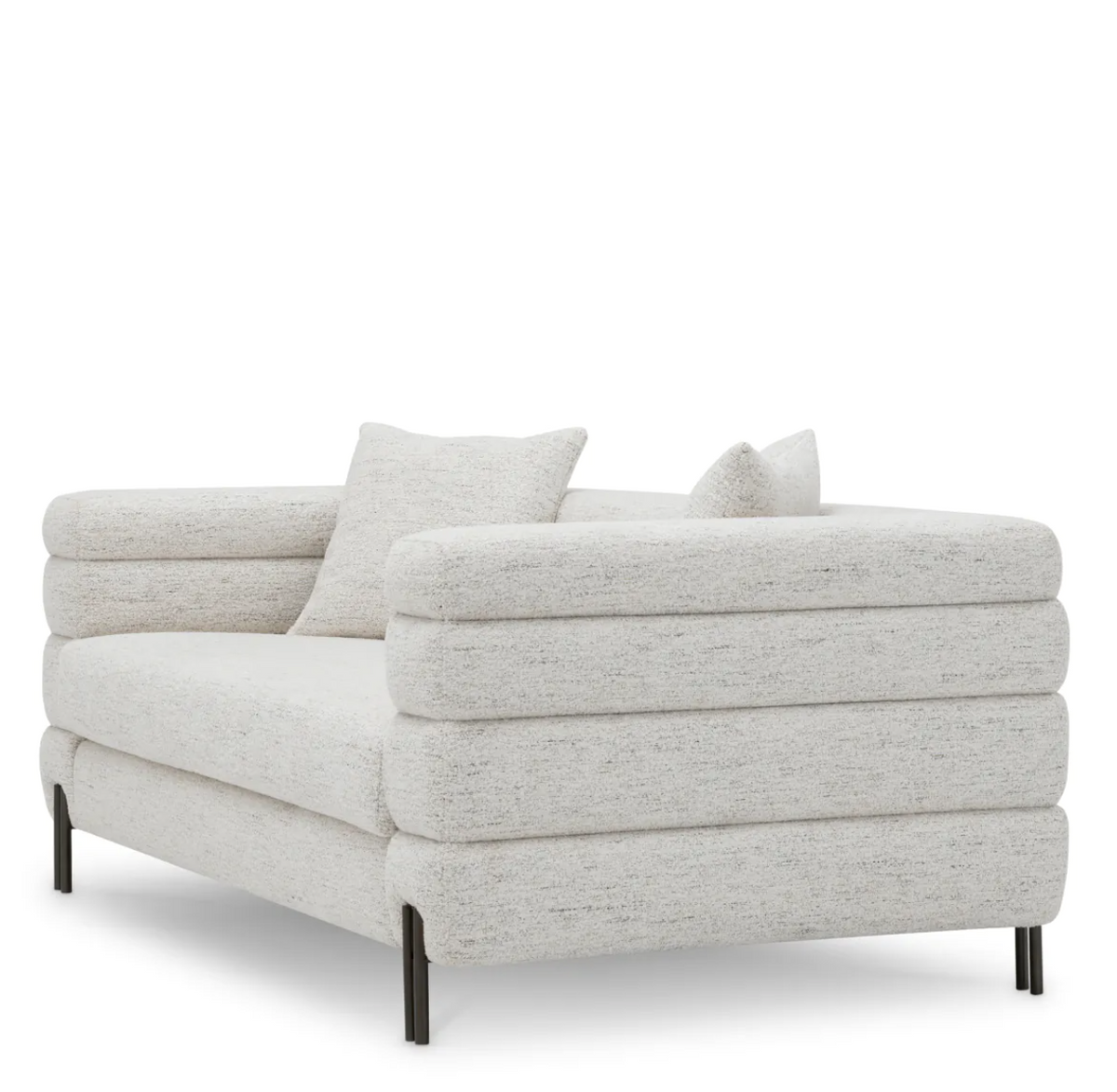 Sofa York S marki Eichholtz tapicerowana elegancką tkaniną Seashell w odcieniu off-white i wsparta na smukłych nogach w kolorze brązu, łączy nowoczesny wygląd z komfortem. Wymiary: W. 190 | D. 100 | H. 70 | SD. 68 | SW. 145 | SH. 45 cm