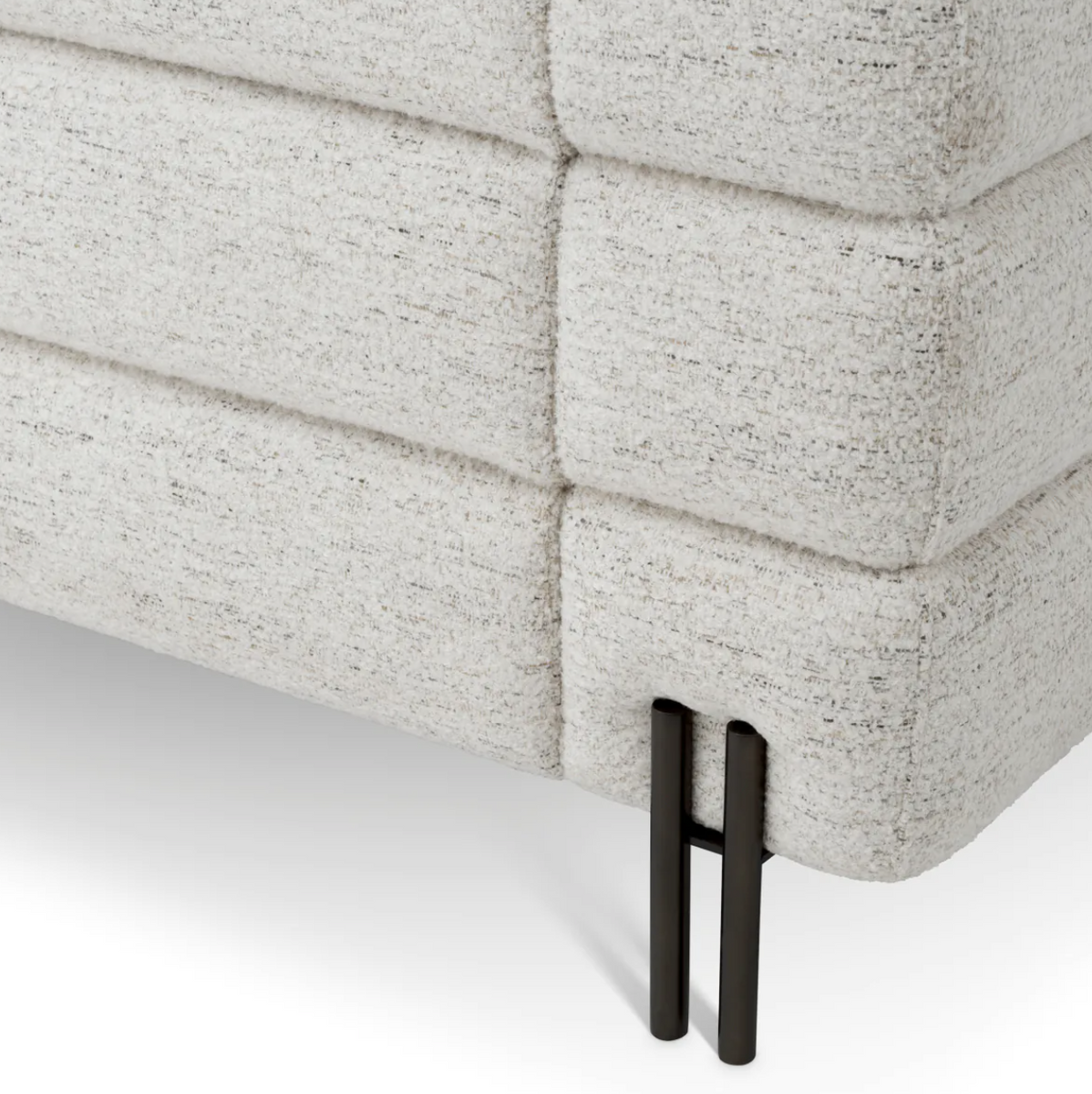 - Sofa York S marki Eichholtz tapicerowana elegancką tkaniną Seashell w odcieniu off-white i wsparta na smukłych nogach w kolorze brązu, łączy nowoczesny wygląd z komfortem.