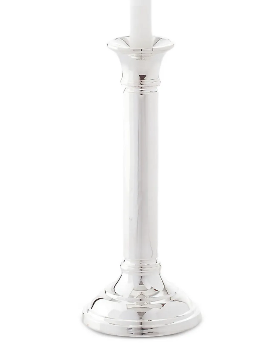 Świecznik Durban marki Ralph Lauren Home czerpie inspirację z zabytkowej zastawy stołowej z hoteli. Ten świecznik jest częścią odnowionego asortymentu, który obejmuje polerowane, posrebrzane elementy o eleganckich, prostych kształtach. Wymiary: wys. 26,5 x śr. 13,5 cm