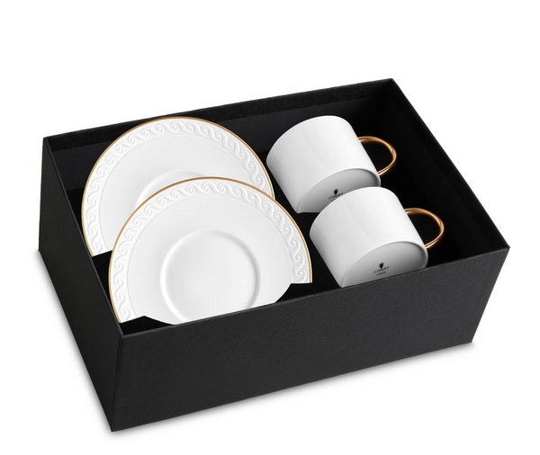 - Zestaw dwóch filiżanek do herbaty L'Objet, z kolekcji Neptune inspirowany ponadczasowym pięknem morza, ręcznie wykonany z delikatnej porcelany. Rzeźbiony w biskwicie i malowany 24-karatowym złotem, subtelnie nawiązuje do fal Morza Śródziemnego.