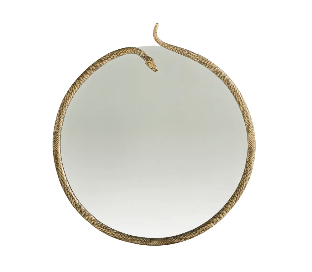 - Lustro Morelia Roberto Cavalli Home Interiors oplata wijące się ciało węża, jakby unosiło się na wodzie. Subtelny ruch rzeźby nadaje całości luksusowy, żywy charakter.