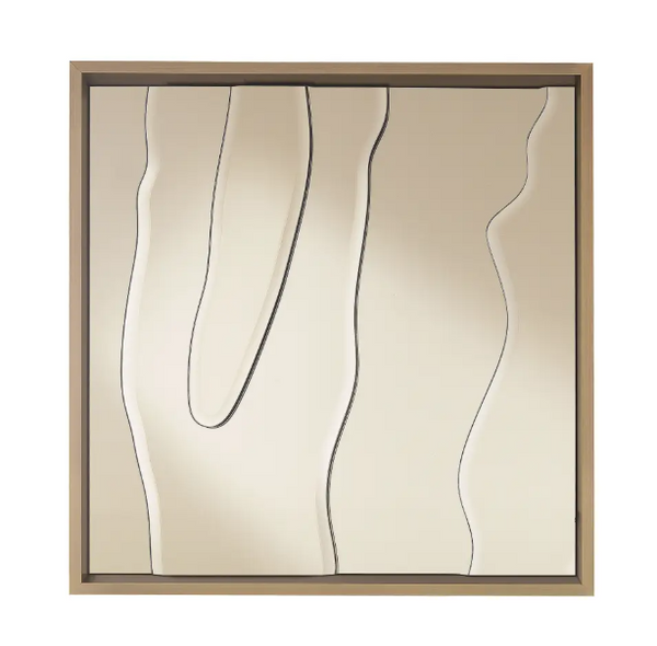 Lustro Sahara Roberto Cavalli Home Interiors to esencja natury, inspirowane falującymi wydmami pustyni. Przypomina formacje piasku. Uzupełnione drewnianą konstrukcją i metalową ramą o szczotkowanym wykończeniu. Wymiary: dł. 130 x głęb. 8 x wys. 130 cm