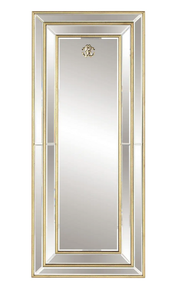 Lustro stojące Morgana Roberto Cavalli Home Interiors eleganckie, dekoracyjne lustro o złoconym wykończeniu inspirowanym fakturą skóry węża. Monogram Roberto Cavalli w odlewanym mosiądzu nadaje całości wyrafinowany, luksusowy charakter. Wymiary: dł. 85 x głęb. 8 x wys. 200 cm