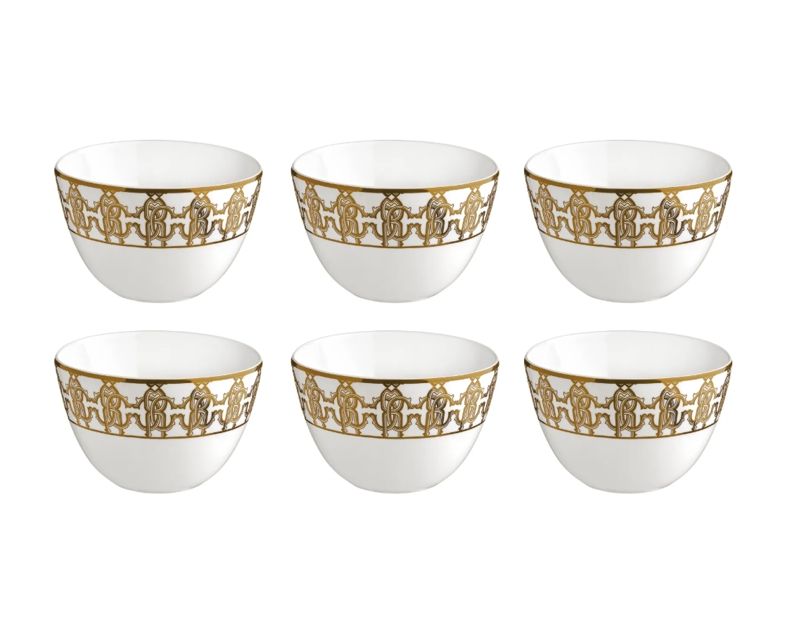 Zestaw sześciu miseczek do ryżu Roberto Cavalli Home, z kolekcji Monogram Gold