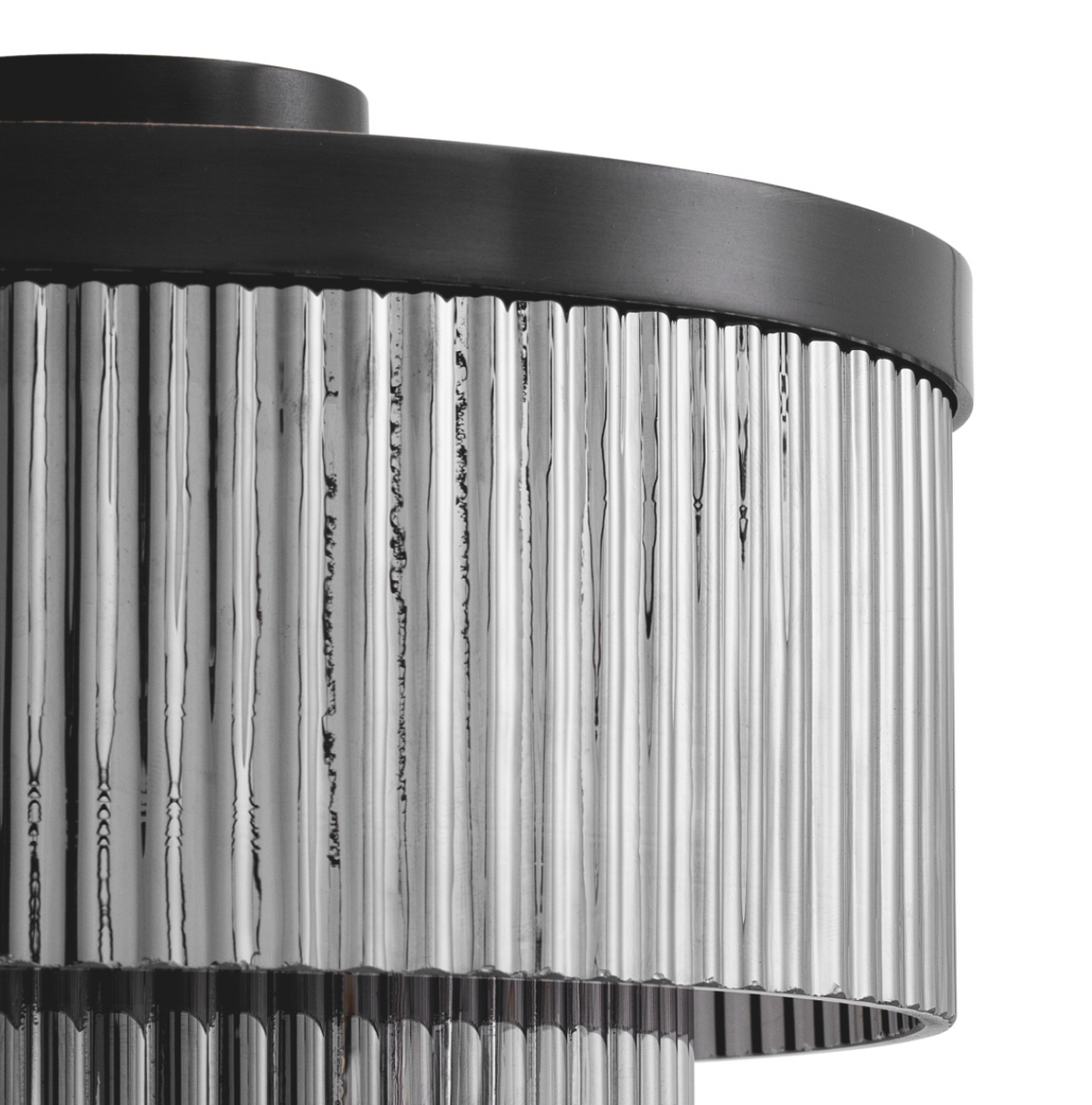 Precyzyjna, radialna konstrukcja w wykończeniu bronze highlight tworzy harmonijny szkielet, wokół którego rozmieszczone są szklane klosze, układające się w idealnej symetrii niczym konstelacja gwiazd. Każdy dyfuzor wykonany jest z delikatnie ryflowanego, lekko przydymionego szkła, które subtelnie rozprasza światło, przywołując migotliwy blask odległej galaktyki.