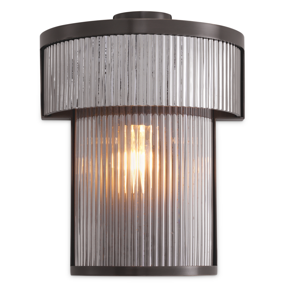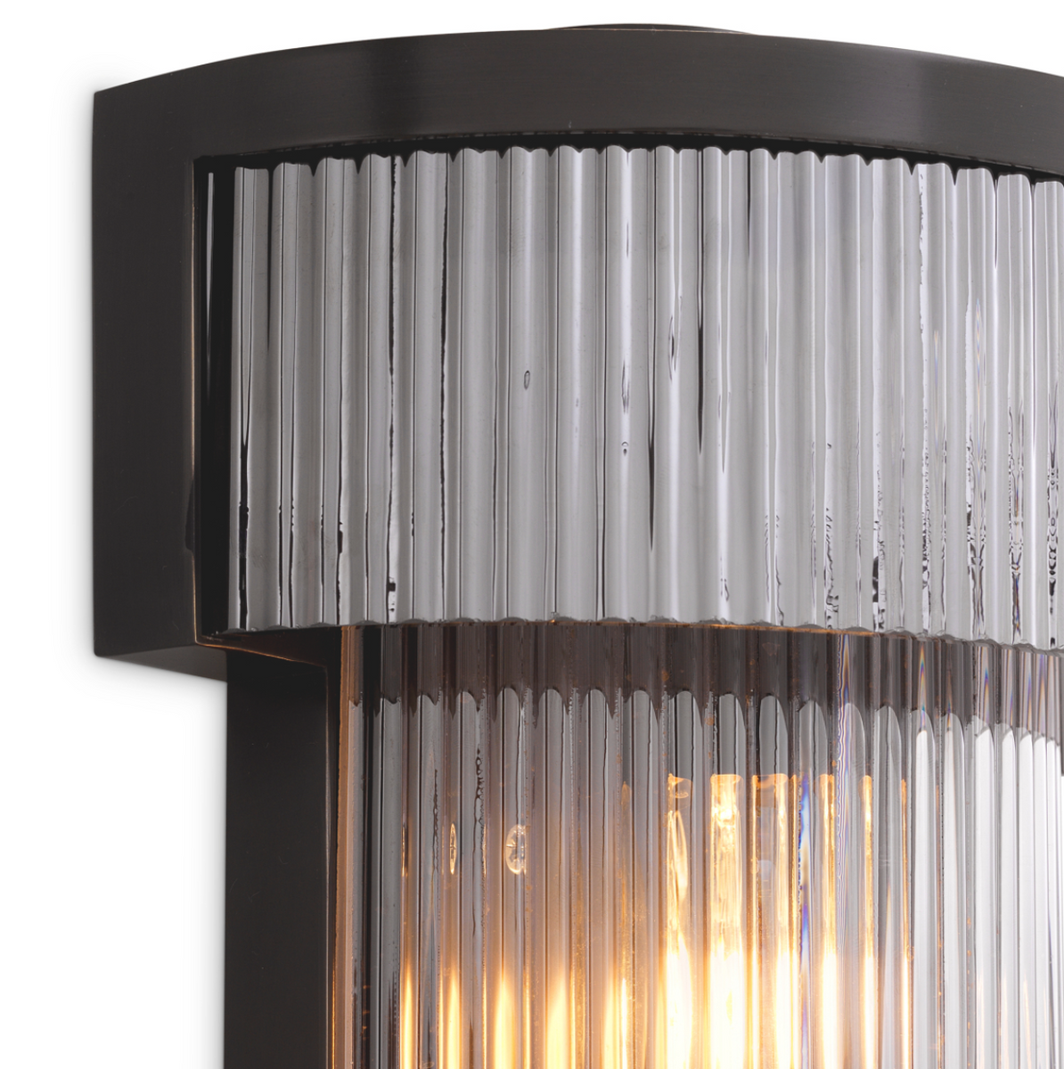 - Kinkiet Andromeda marki Eichholtz to nowoczesna interpretacja motywów kosmicznych. Metalowa konstrukcja w odcieniu brązu i ryflowane przydymione szkło tworzą oryginalne oświetlenie.