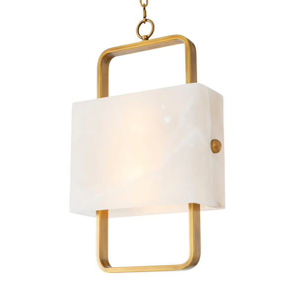 - Żyrandol Melbourne marki Eichholtz to kwintesencja nowoczesnej elegancji. Alabastrowy klosz w formie kubu subtelnie rozprasza światło, a minimalistyczna rama w wykończeniu antique brass tworzy rzeźbiarską, ponadczasową kompozycję.
