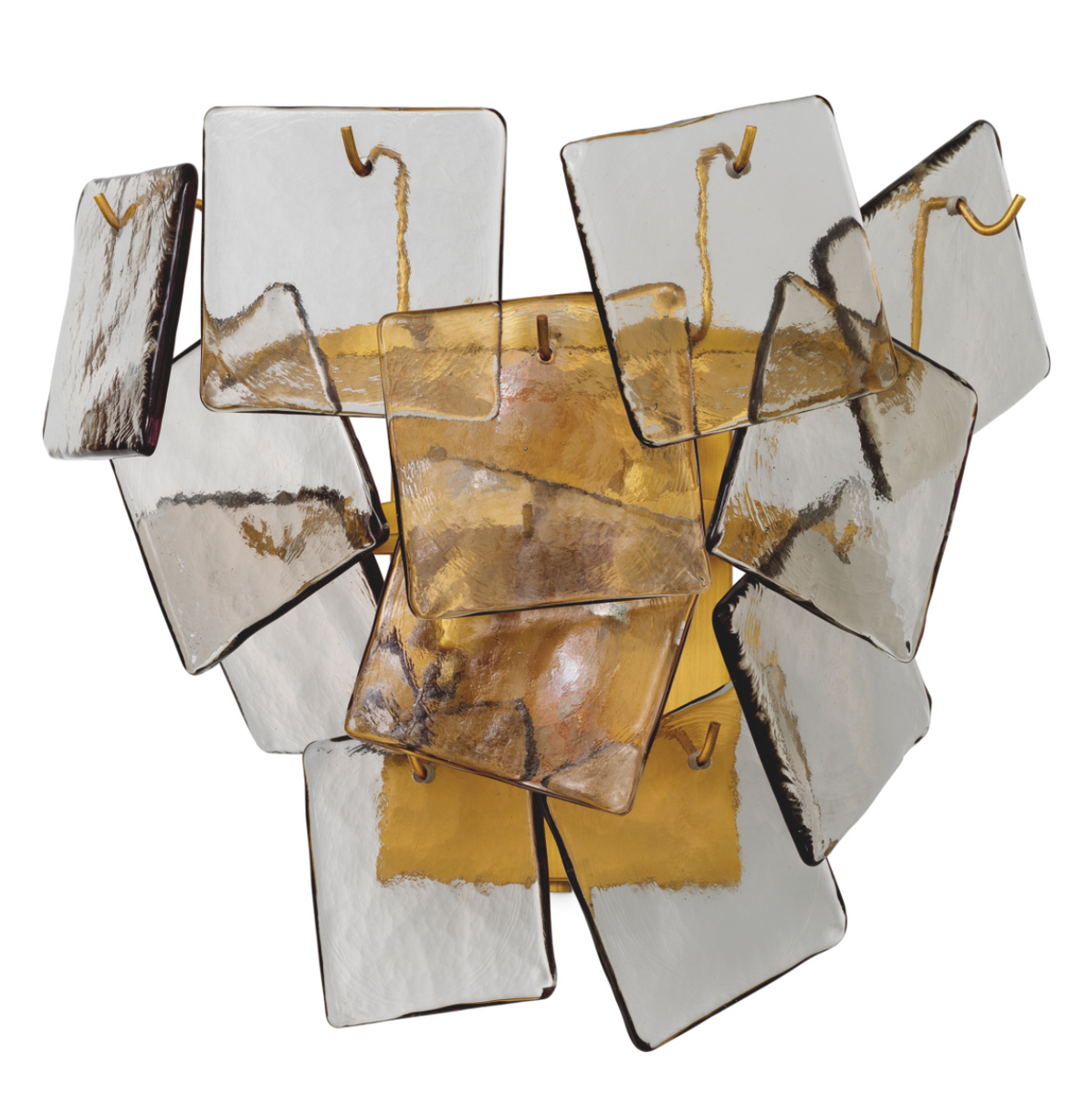 • Kinkiet Biltmore marki Eichholtz to eleganckie połączenie wykończenia antique brass i klosza z jasnego, dymionego szkła. Subtelne światło i rzeźbiarska forma czynią go stylowym akcentem do sypialni, salonu lub holu.