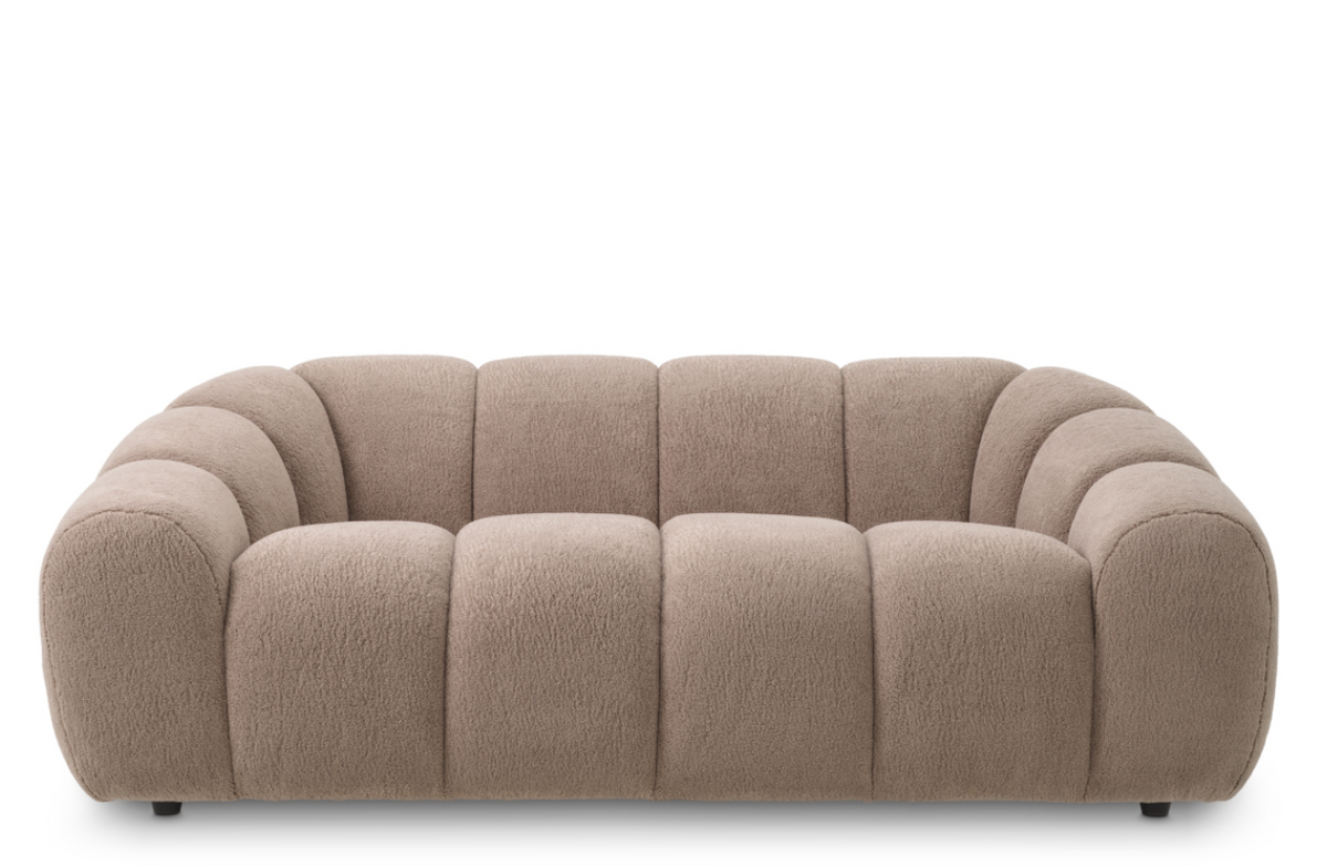- Sofa Gavona marki Eichholtz w tkaninie Withmore greige z czarnymi nogami to nowoczesna, dwuosobowa forma inspirowana miękkimi, obłymi kształtami. Zapewnia komfort, ergonomiczne podparcie i subtelną elegancję.