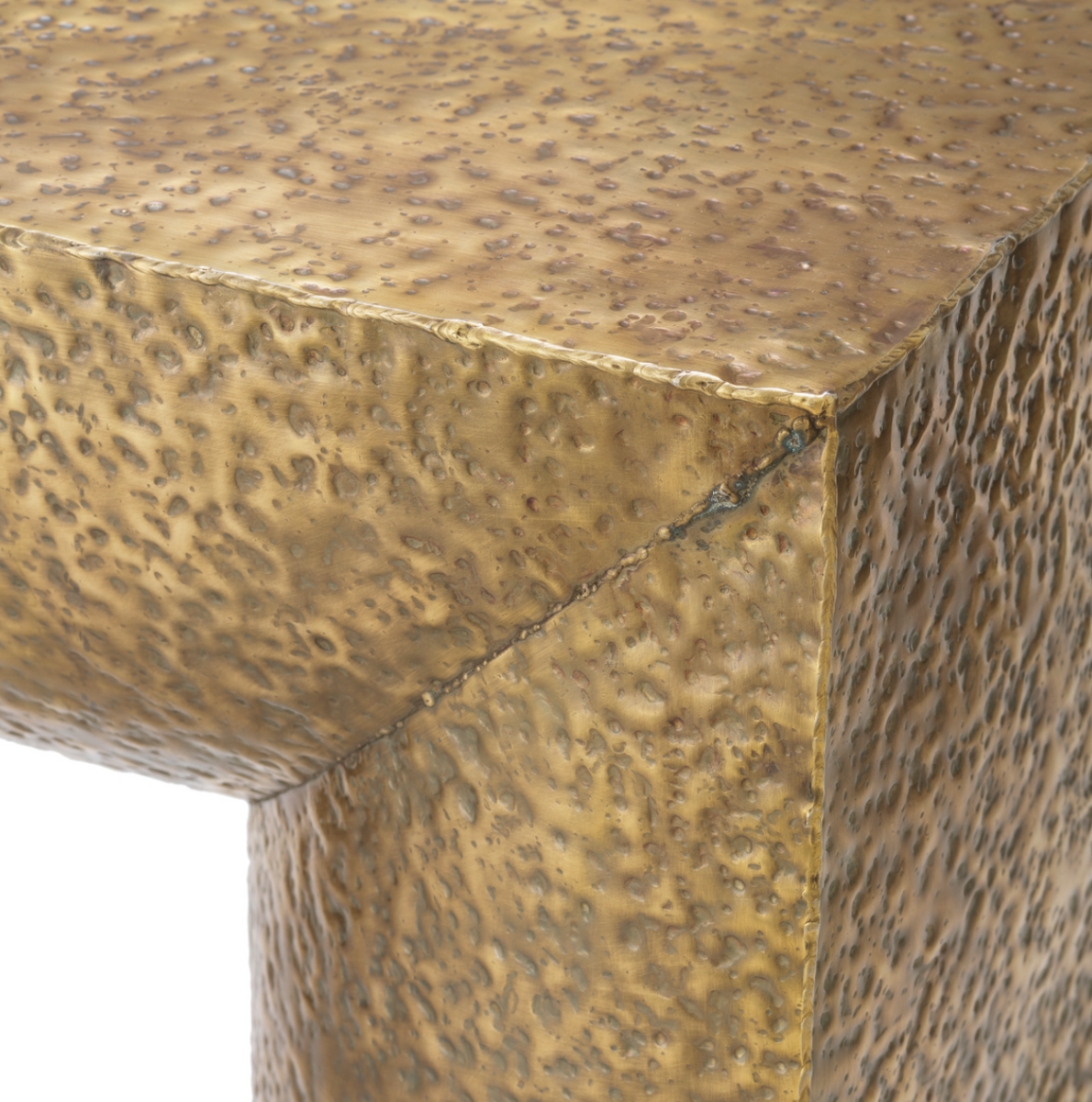• Stolik kawowy Drayton marki Eichholtz to rzeźbiarska forma wykończona ręcznie młotkowanym mosiądzem w odcieniu vintage. Wyrazista faktura i ciepły, złocisty ton czynią go eleganckim punktem centralnym salonu.