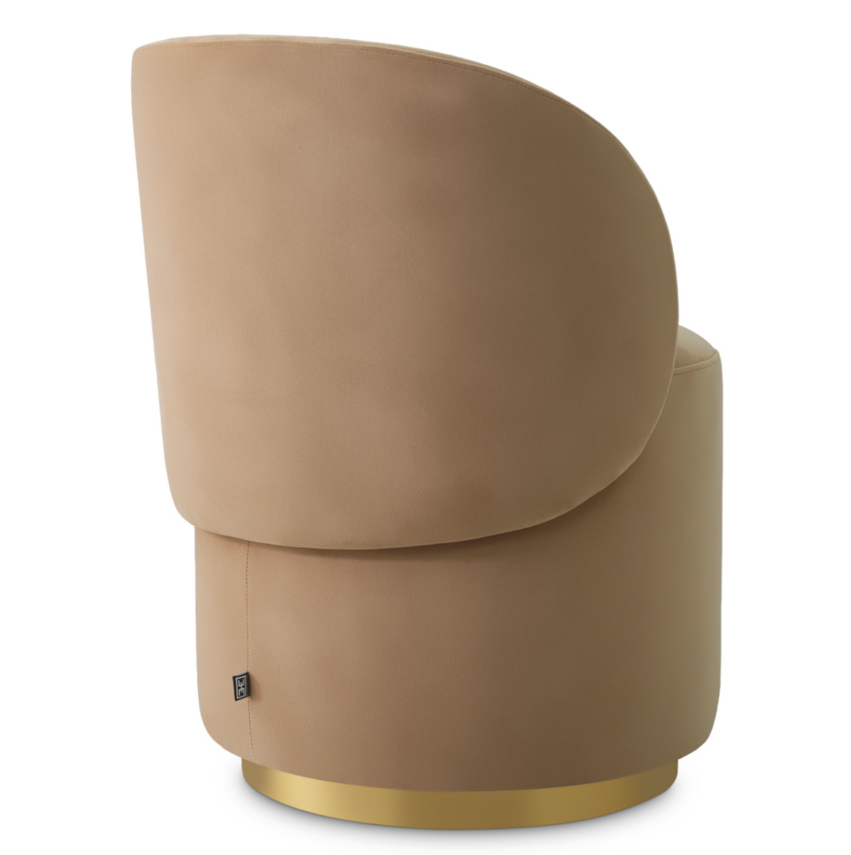 - Krzesło jadalniane Greer marki Eichholtz w tkaninie Savona camel z obrotową podstawą ze szczotkowanego mosiądzu łączy komfort z elegancką, nowoczesną formą. Subtelna kolorystyka nadaje jadalni wyrafinowany charakter.