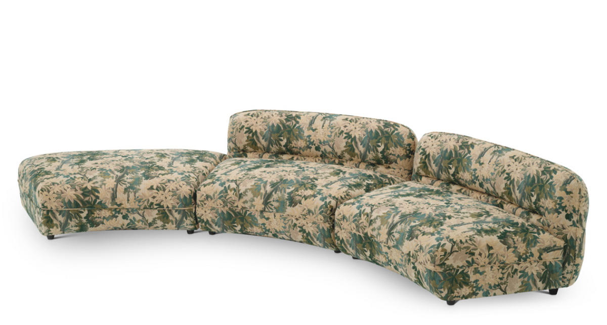 • Sofa modułowa Grand Avenue marki Eichholtz w tkaninie Marston green to połączenie luksusu i ponadczasowego wzornictwa. Miękkie poduchy zapewniają komfort, a modułowa konstrukcja umożliwia łączenie z dopasowanym pufem.
