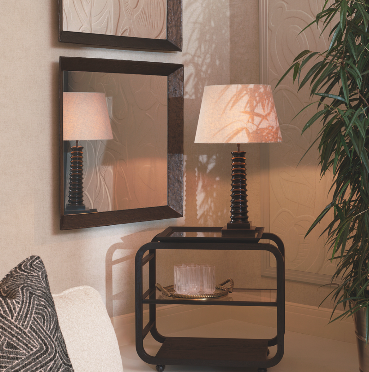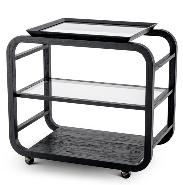 - Wózek Mayfair marki Eichholtz to klasyczny mebel wykonany z litego drewna w czarnym wykończeniu. Wyjmowana taca i kółka zapewniają funkcjonalność, a elegancka forma sprawdzi się w każdym wnętrzu.