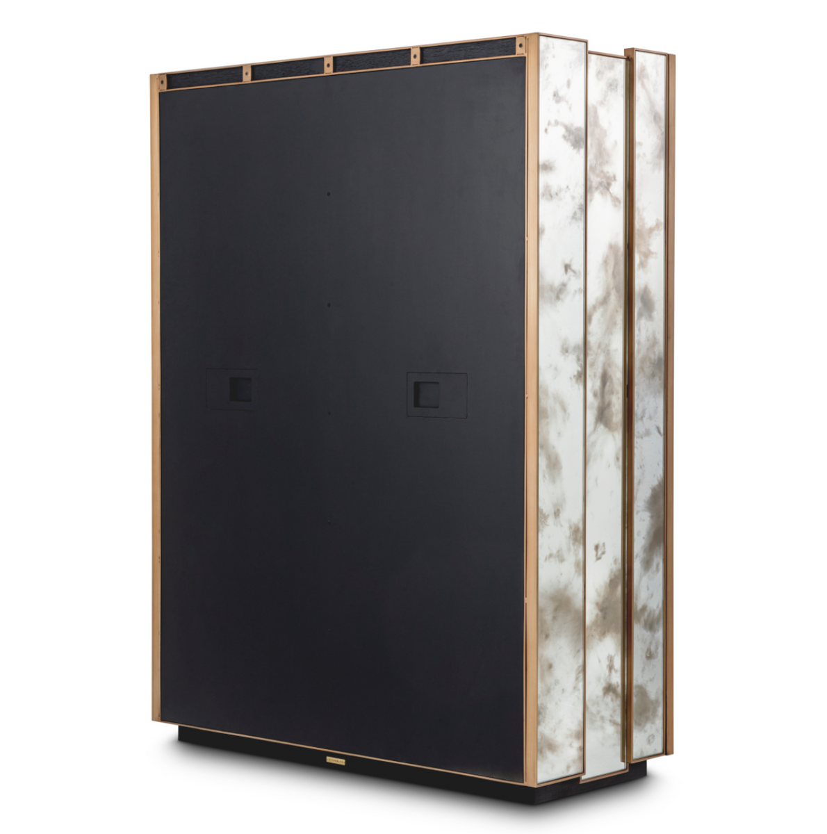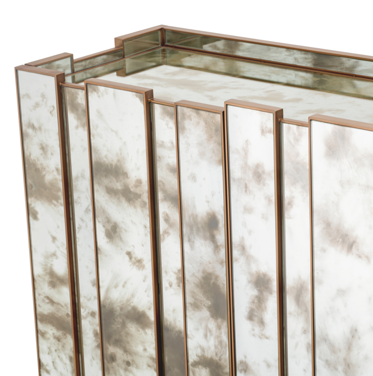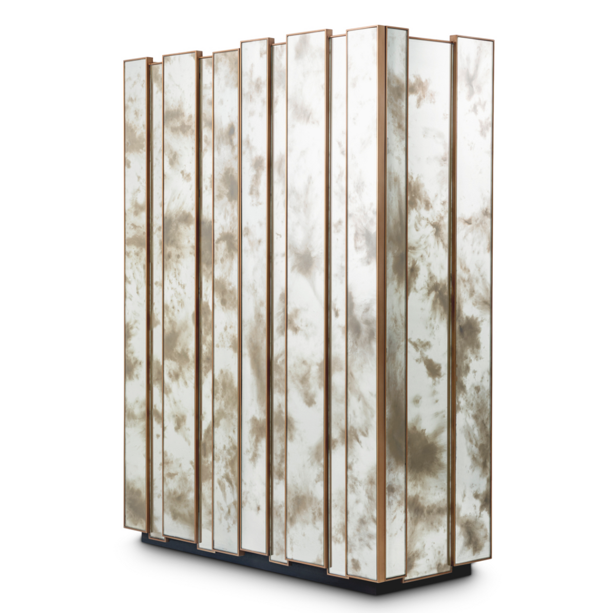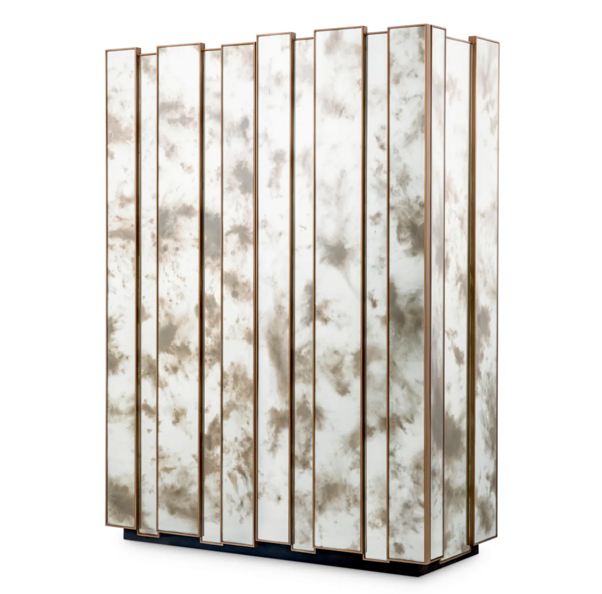 - Bar Nottingham marki Eichholtz to elegancki mebel łączący szkło lustrzane antique z detalami ze szczotkowanego mosiądzu. Przemyślany układ półek zapewnia funkcjonalne i stylowe przechowywanie.