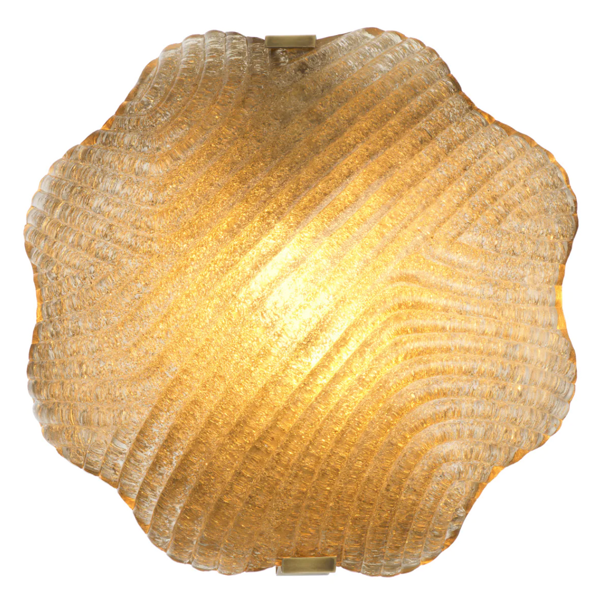 Kinkiet Nuria marki Eichholtz to połączenie rzemieślniczego szkła o wyrazistej fakturze i szlachetnego wykończenia vintage brass. Lampa emituje ciepłe, nastrojowe światło, podkreślając elegancję wnętrza. To stylowy i dekoracyjny akcent do klasycznych oraz nowoczesnych aranżacji. Wymiary: szer. 28 | głęb. 10 | wys. 28 cm