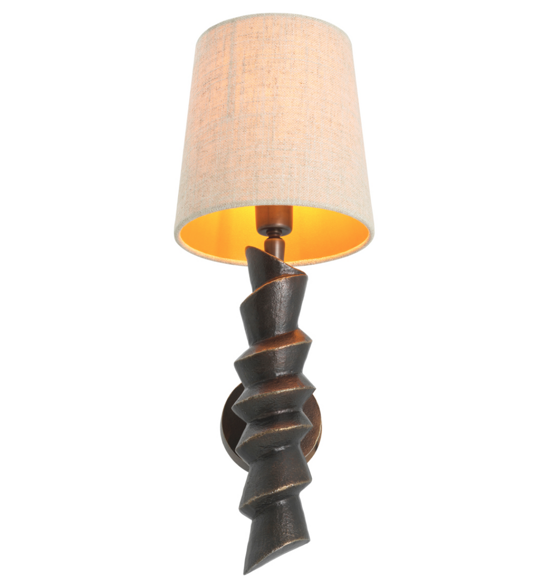 - Kinkiet Riverbank marki Eichholtz wykonany jest z metalu i wykończony w odcieniu bronze highlight. Regulowany klosz oraz abażur z mieszanki lnu pozwalają dopasować światło do potrzeb, łącząc elegancję z funkcjonalnością.