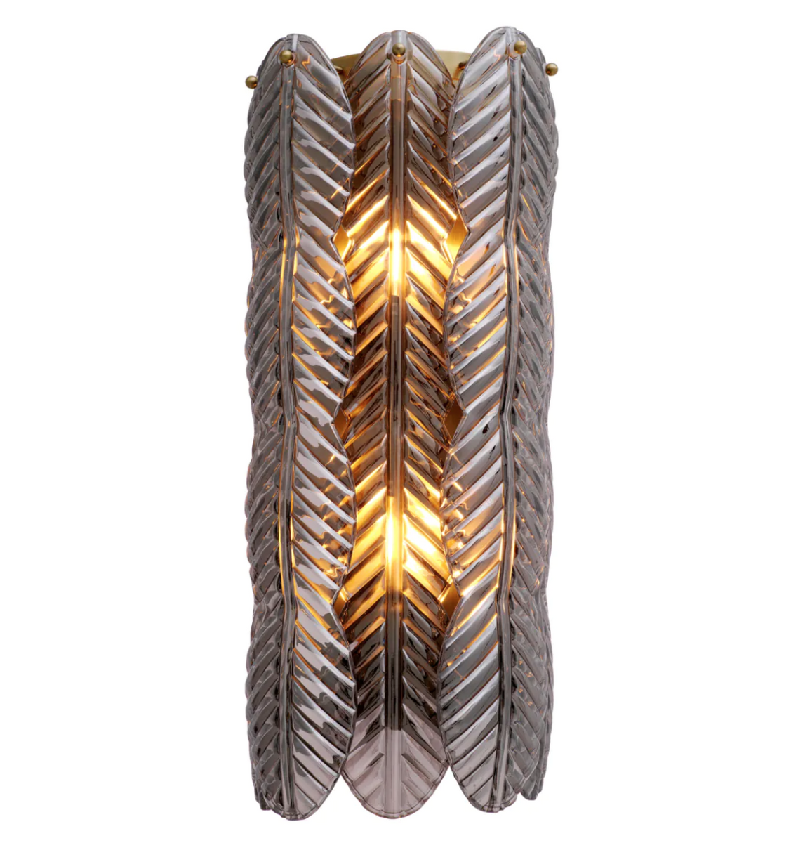 Forma kinkietu nawiązuje do motywów liści daktylowca zdobiących granitową kolumnę muzealną. Warstwowa konstrukcja z przydymionego szkła w połączeniu ze szczotkowanym mosiądzem nadaje całości wyrafinowany i ponadczasowy charakter. Kinkiet Sahure doskonale łączy historyczne rzemiosło z nowoczesną elegancją, stanowiąc luksusowy akcent ścienny. Idealnie komponuje się z żyrandolem Sahure, tworząc spójny i prestiżowy zestaw oświetleniowy.