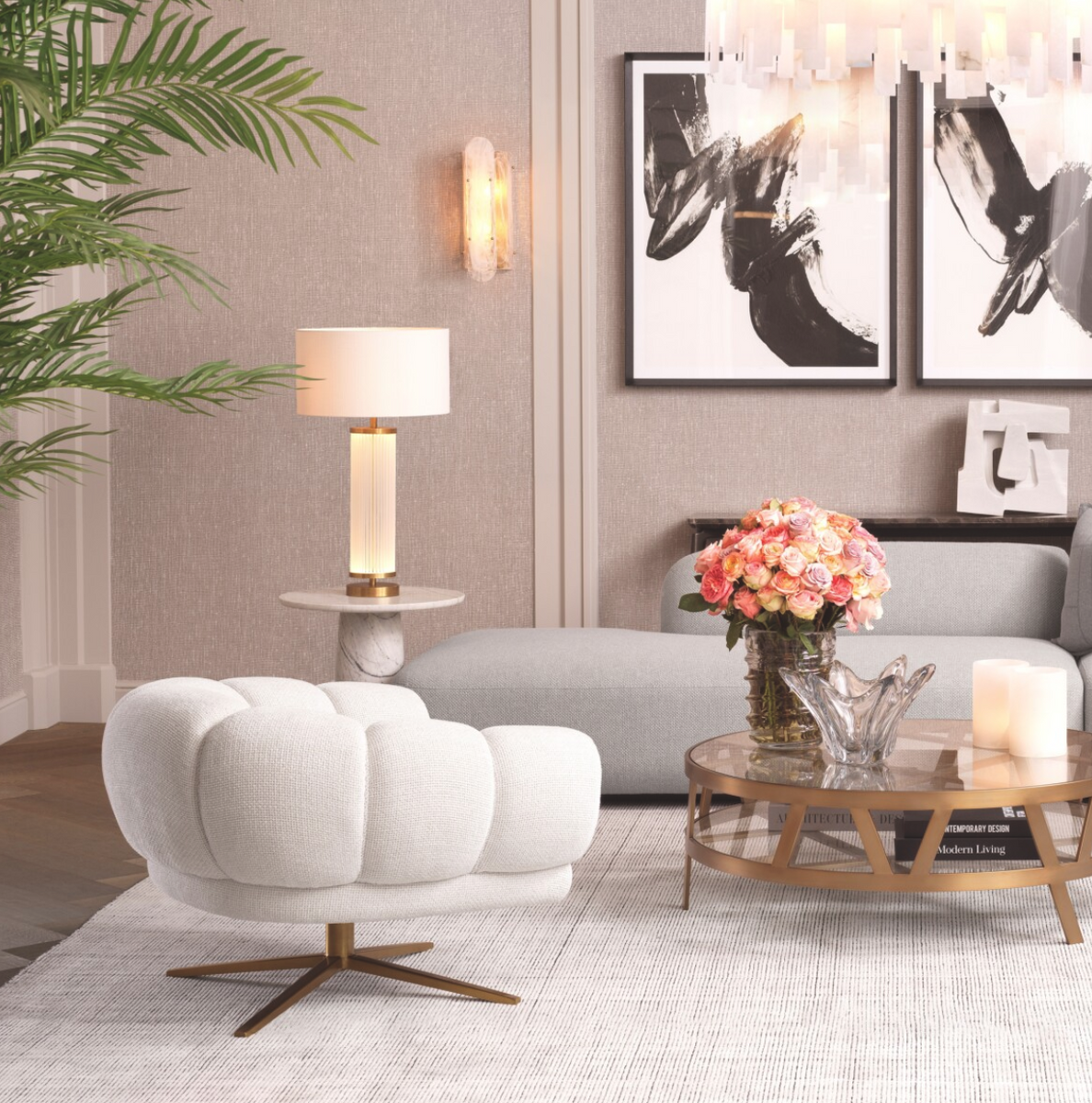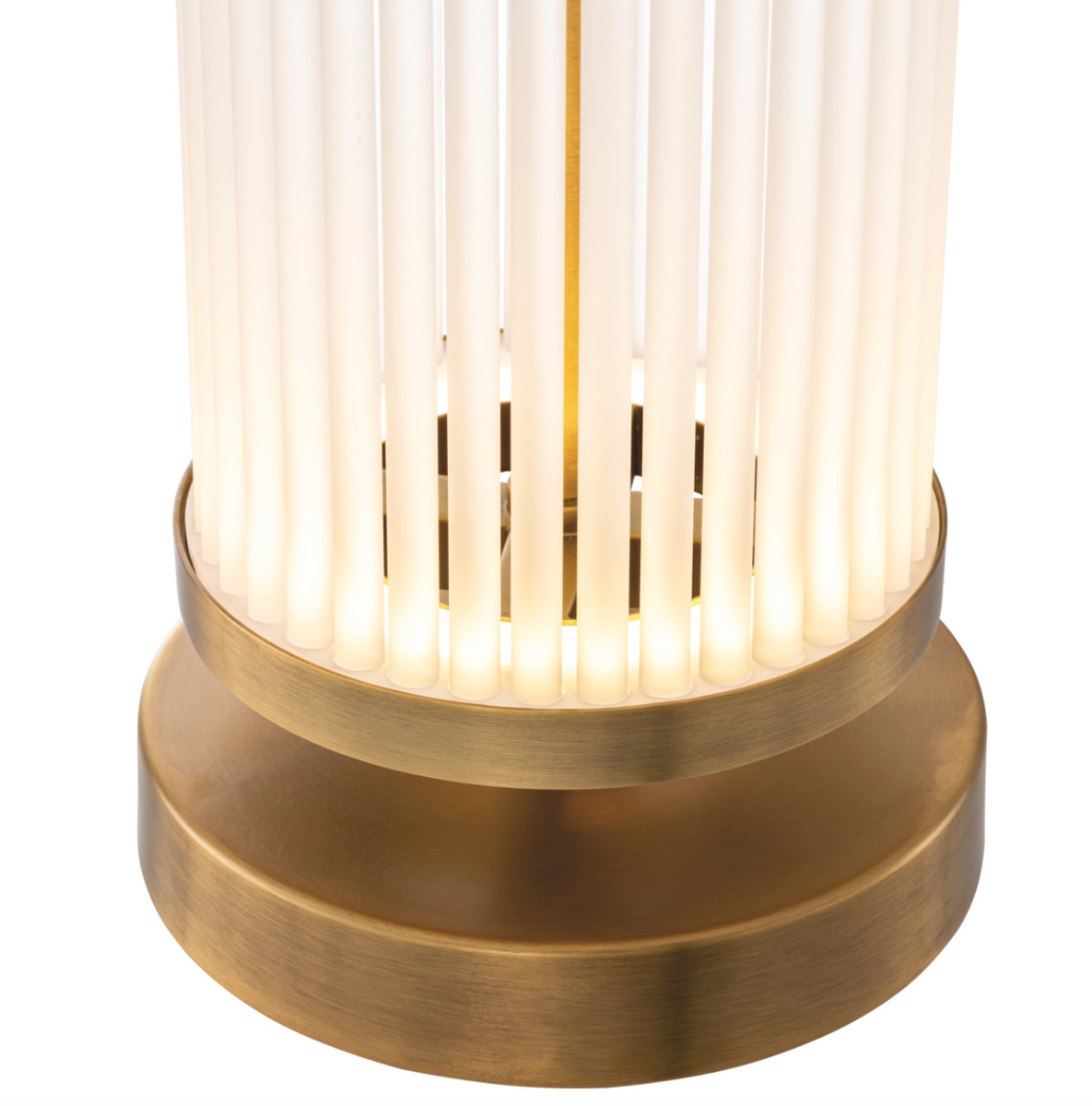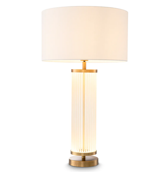 • Lampa stołowa Thibaud marki Eichholtz zachwyca wykończeniem w odcieniu antycznego mosiądzu i mlecznym szkłem. Dodatkowe podświetlenie w podstawie z funkcją ściemniania tworzy ciepłą, nastrojową atmosferę.