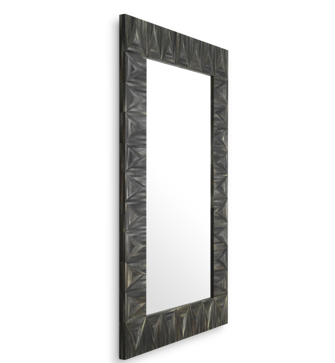 Lustro Belmont marki Eichholtz zachwyca mistrzowskim wykonaniem i szlachetną estetyką. Ręcznie wykonane z intarsji słomianej, z wykorzystaniem tradycyjnych technik rzemieślniczych, odzwierciedla precyzję, cierpliwość i dbałość o detale. Dekoracyjny wzór w odcieniu charcoal nadaje mu wyrafinowany charakter i czyni je eleganckim punktem centralnym aranżacji. Lustro można zawiesić zarówno w pionie, jak i w poziomie, co pozwala na wszechstronne dopasowanie do wnętrza. Wymiary: dł. 140,5 | szer. 90 | gł. 3 cm