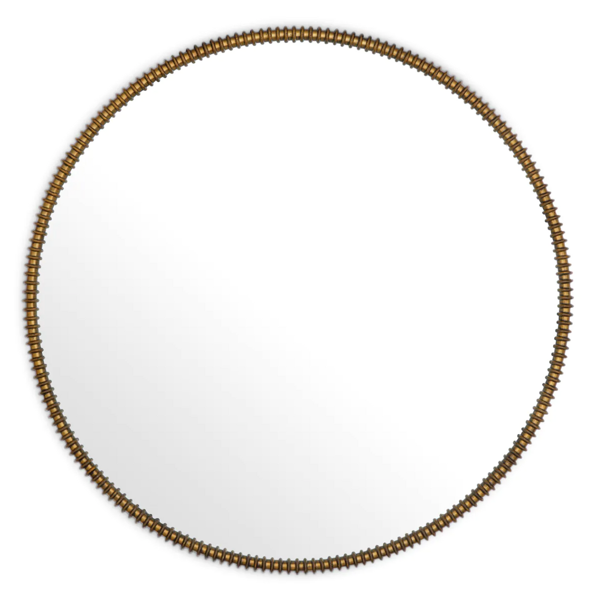 Lustro Vezzola marki Eichholtz to wyrafinowany element dekoracyjny o dużej, okrągłej formie. Rama z ręcznie formowanego aluminium świadczy o wysokim kunszcie wykonania, a wykończenie vintage brass dodaje całości szlachetnej elegancji. Lustro doskonale sprawdzi się w salonie, przedpokoju lub sypialni, łącząc funkcjonalność z ponadczasowym stylem i stając się wyrazistym punktem aranżacji. Wymiary: Ø 124 | gł. 4,5 cm