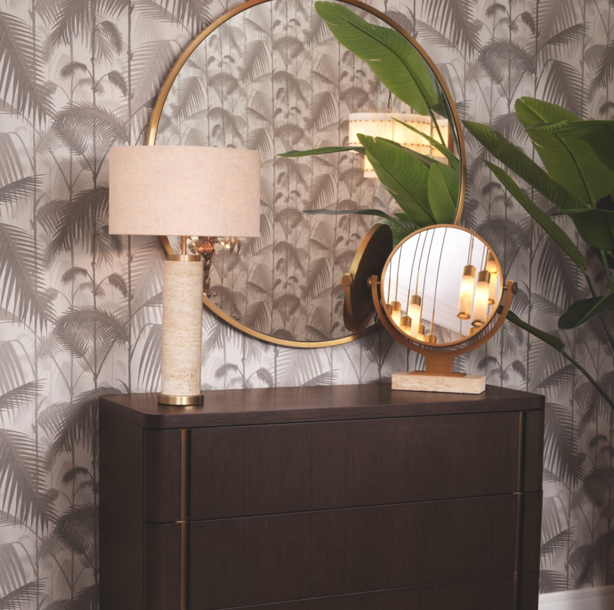 Lustro Briancon marki Eichholtz to wyrafinowane lustro stołowe zaprojektowane z myślą o codziennym komforcie. Obrotowa konstrukcja oraz rama w wykończeniu antique brass łączą funkcjonalność z elegancją. Stabilna podstawa z naturalnego trawertynu nadaje całości luksusowy charakter i zapewnia trwałość. To idealny dodatek do toaletki lub łazienki, doskonały do makijażu i golenia. Wymiary: Ø 40 | szer. 30 | gł. 12 | wys. 56 cm