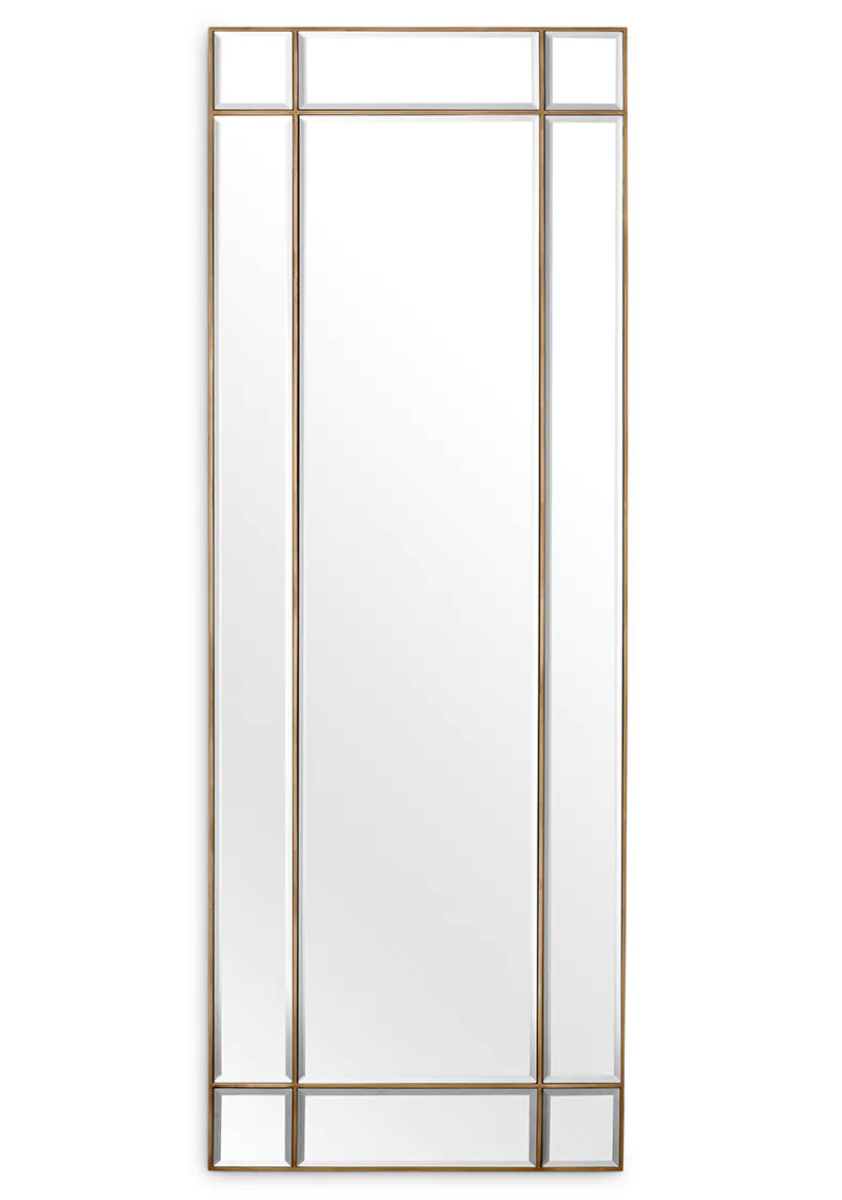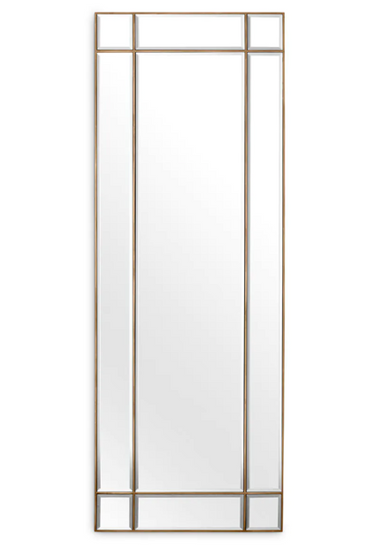 • Lustro Beaumont marki Eichholtz ma formę okna i prostokątny kształt. Rama w wykończeniu vintage brass oraz fazowane szkło lustrzane nadają mu nostalgiczny, elegancki charakter.