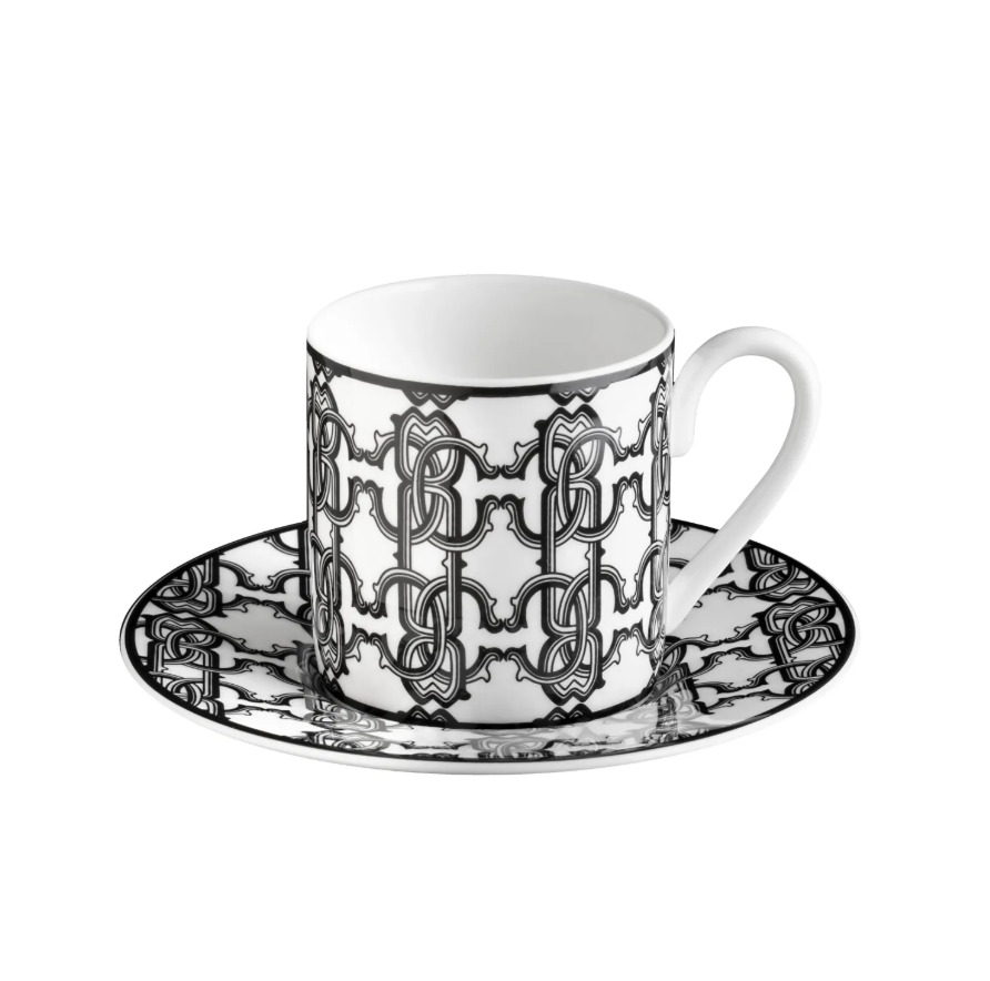 - Zestaw sześciu filiżanek do kawy Roberto Cavalli Home, z kolekcji Monogram Black to luksusowa propozycja o barokowym charakterze. Czarna dekoracja tworzy spójną, efektowną kompozycję na stole. Wykonane z porcelany Bone China.