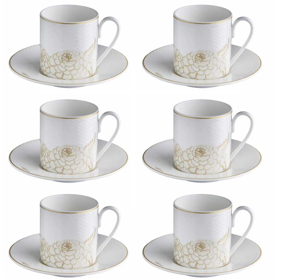 - Zestaw sześciu filiżanek do kawy marki Roberto Cavalli Home z kolekcji Blooming Roses. Wykonane z wysokiej jakości porcelany, zdobione delikatnym motywem kwiatowym w odcieniach beżu i złota. Elegancki akcent wiosennego stołu.