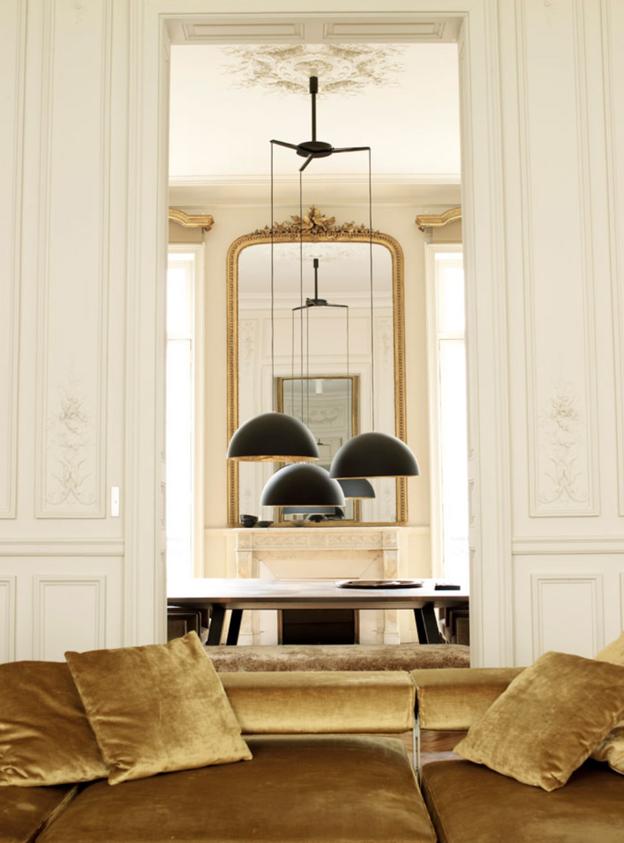 - Żyrandol Stchu-Moon marki Catellani&Smith to rzeźbiarska forma z metalowych kloszy w wykończeniu rough iron i złota. Nieregularne powierzchnie odbijają światło, tworząc miękki, nastrojowy blask o dekoracyjnym charakterze.