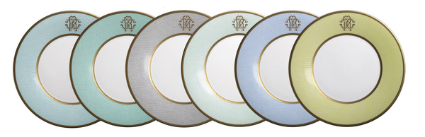 - Zestaw talerzy obiadowych firmy Roberto Cavalli Home, z kolekcji Lizzard Sunrise z fakturą skóry jaszczurki został wykonany z wysokiej jakości porcelany Bone China oraz pokryty 24 karatowym złotem.
