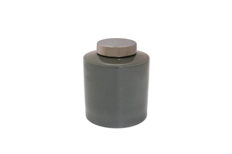 Waza Oslo marki Eichholtz w kolorze antracytowym została wykonana z ceramiki. Inspirowany nowoczesnym minimalizmem. Prosta, cylindryczna forma została utrzymana w stonowanej, eleganckiej kolorystyce, którą dopełnia kontrastująca pokrywka. Harmonijne proporcje i oszczędne wzornictwo sprawiają, że waza doskonale wpisuje się zarówno w nowoczesne, jak i bardziej klasyczne aranżacje, stanowiąc subtelny, a jednocześnie wyrazisty akcent wnętrza. Wymiary: 20 x 25 cm.
