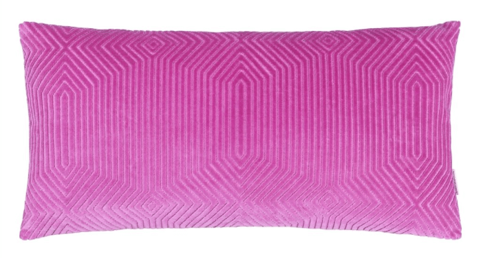 Poduszka Roxburgh Fuchsia firmy Designers Guild została wykonana z aksamitu oraz wykończona geometrycznym wzorem w różowym kolorze. Wymiary: 60 x 30 cm.