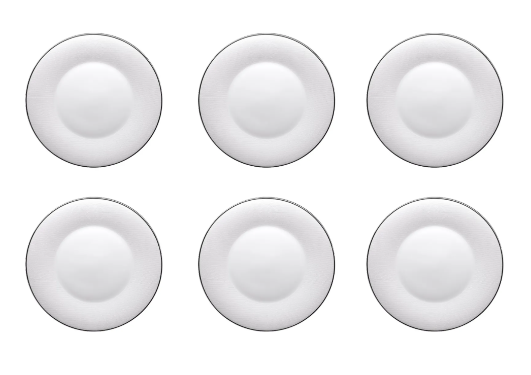 Talerz obiadowy marki Roberto Cavalli Home z kolekcji Lizzard Platin. Wykonany z wysokiej jakości porcelany, należy do wyrafinowanej i eleganckiej kolekcji o spójnym, monochromatycznym charakterze. Delikatna dekoracja inspirowana strukturą skóry gadów została utrzymana w tonacji ton-w-ton z białą porcelaną, tworząc harmonijny i nowoczesny efekt. Całość uzupełnia srebrny rant oraz biały monogram Roberto Cavalli Home, które subtelnie przełamują jednolitą powierzchnię metalicznymi akcentami. Talerze doskonale sprawdzą się w nowoczesnych, eleganckich aranżacjach stołu. Średnica 27,5 cm.