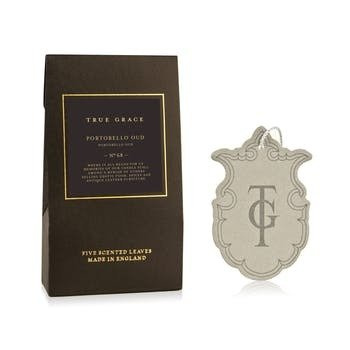 Saszetki zapachowe True Grace Portobello Oud. Nuty głowy: bergamotka, imbir. Nuty serca: drzewo sandałowe, oud (agar), kolendra. Nuty bazy: skóra, paczula, piżmo, cedr. Zapach utrzymuje się do 4 tyg. Opakowanie: 5 szt. Rozmiar liścia 83*56*1 mm