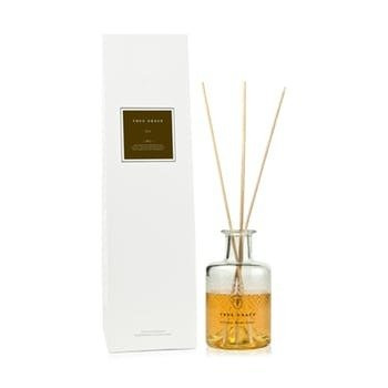 • Perfumy dla domu firmy True Grace Fig, z kolekcji Village. Butelka w przezroczystym szkle wypełniona trzcinowymi patyczkami rozprzestrzenia zapach na całe pomieszczenie.