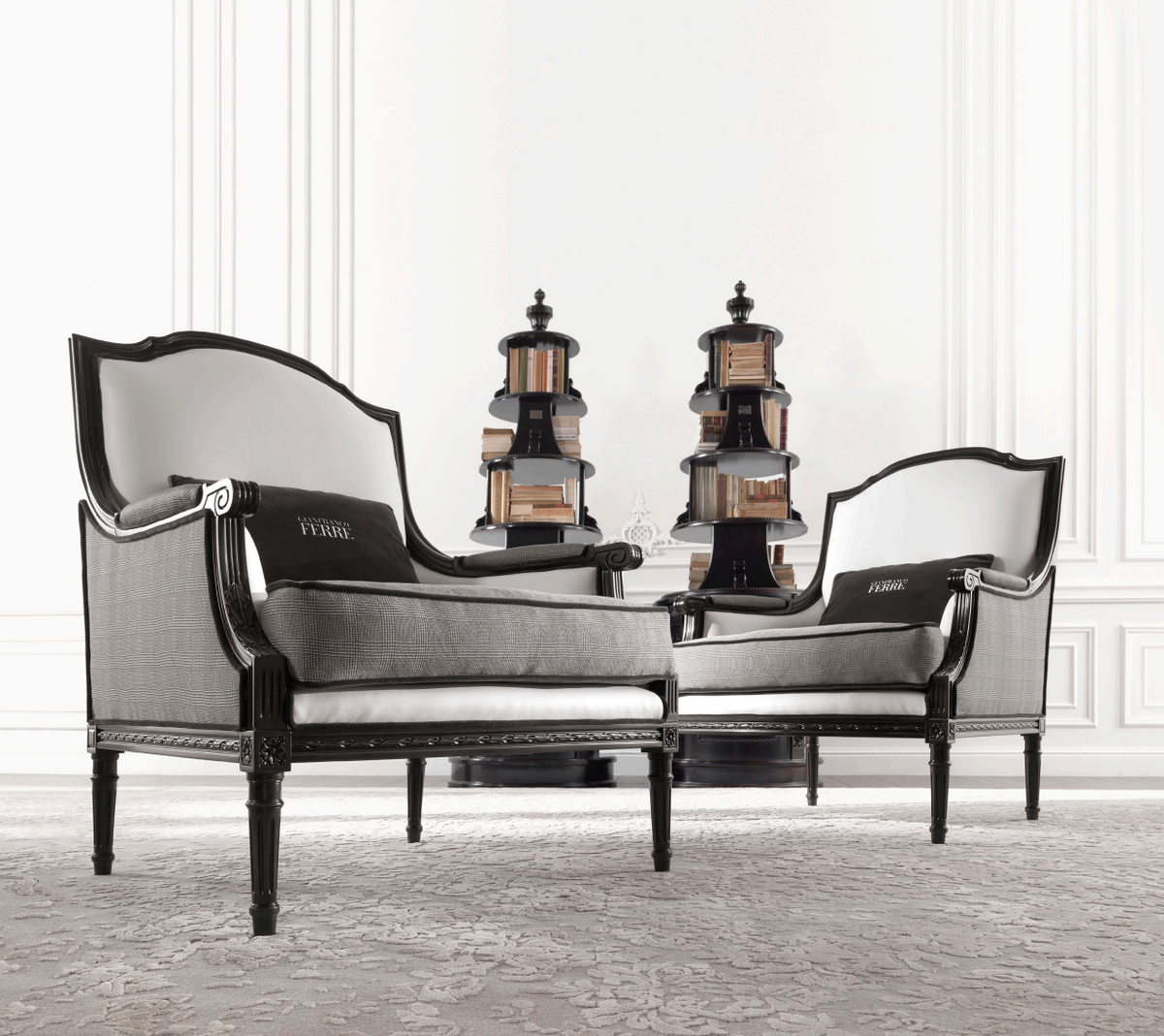 - Fotel Sweet marki Gianfranco Ferre Home wykonany z drewna bukowego i pianki, z wykończeniem GF Black Lacquered. Tapicerka z tkaniny kat. A. Poduszka dekoracyjna nie jest dołączona.