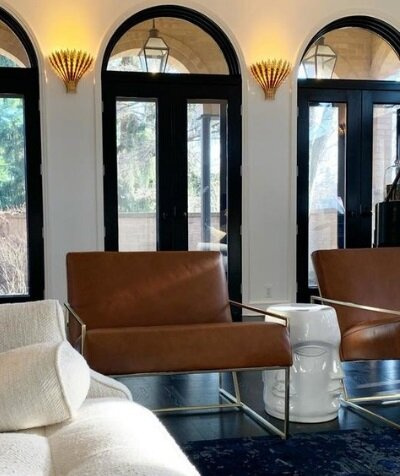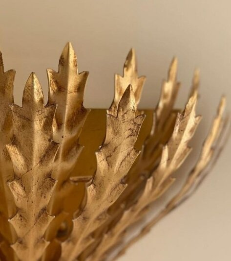 • Kinkiet Hampton firmy Aerin został pokryta złotem. Lampa posiada gniazdo na żarówkę E 27.