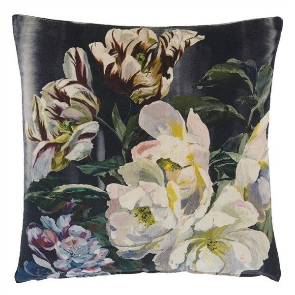 Poduszka dekoracyjna Delft Flower Noir firmy Designers Guild została wykonana z aksamitu oraz wykończona kwiatowym wzorem. Wymiary: 60 x 60 cm.