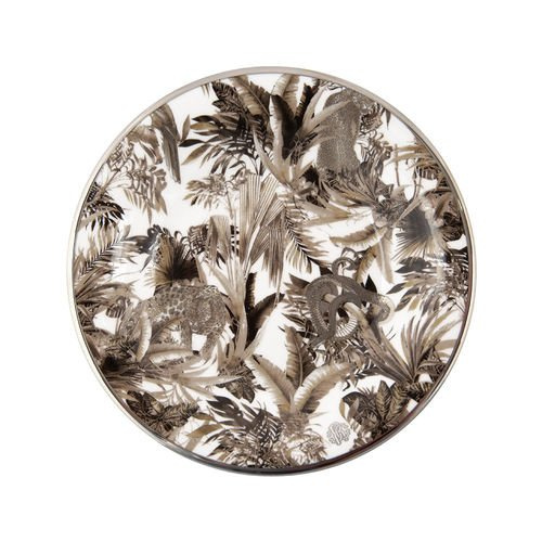 Zestaw talerzy deserowych firmy Roberto Cavalli Home, z kolekcji Tropical Jungle został wykonany z wysokiej jakości porcelany kostnej z tropikalnym motywem, pokryty złotem oraz monogramem Roberto Cavalli. Wymiary: Ø 21,5 cm.