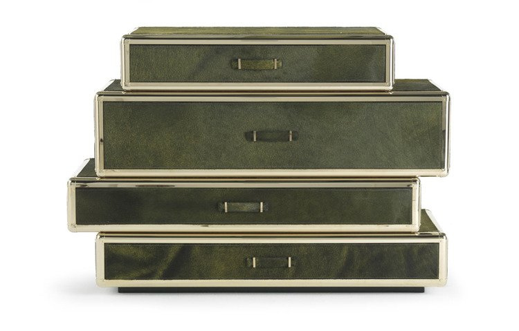 - Komoda Fly Case firmy Roberto Cavalli Home Interiors została wykonana z drewna pokrytego skórą. Metalowe wykończenie w złotym kolorze.