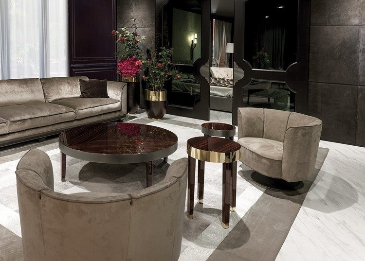 • Stolik Ring firmy Longhi został wykonany z drewna w kolorze hebanu oraz wykończony metalem.