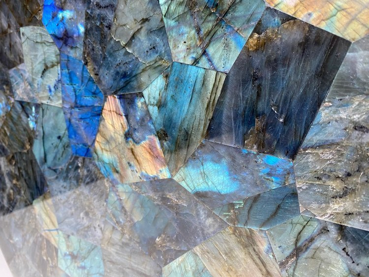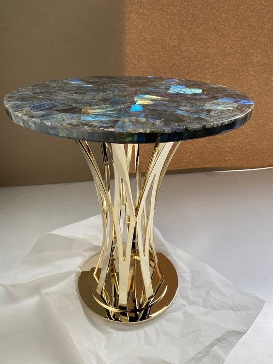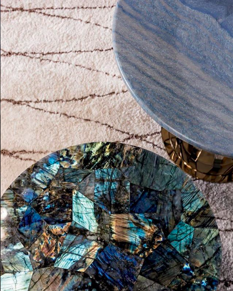 - Stolik Giselle 46 firmy Smania został wykonany z polerowanej stali niklowej oraz wykończony labradorytem.
