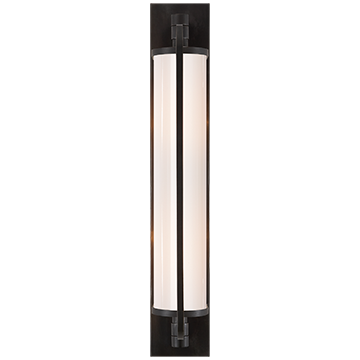 Kinkiet łazienkowy Keeley projektu Thomas O'Brien został wykonany w brązowym kolorze oraz wykończony mlecznym szkłem. Wymiary: 9 x h. 52.8 cm.