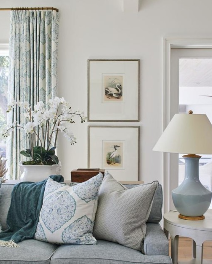 Lampa stołowa Lambay projektu Chapman & Myers została wykonana z porcelany oraz wykończona w niebieskim kolorze. Lampa posiada gniazdo na żarówkę E 27. Wymiary: wys. 81.9 x szer. 50.8 cm