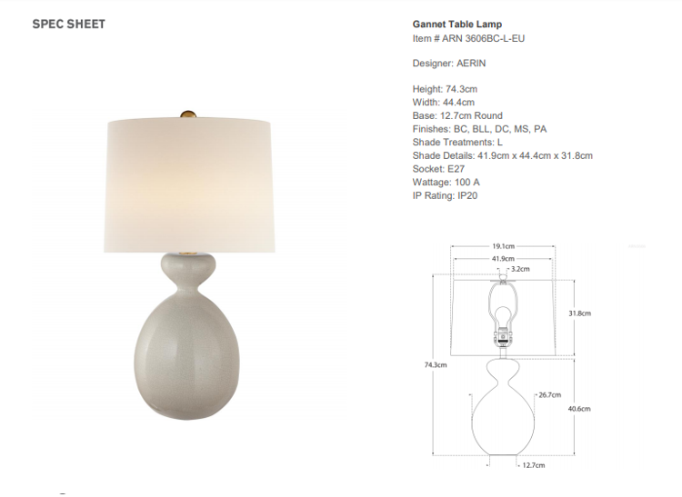 - Lampa stołowa Gannet projektu Aerin została wykonana z ceramiki oraz wykończona jasnym abażurem. Lampa posiada gniazdo na żarówkę E 27.