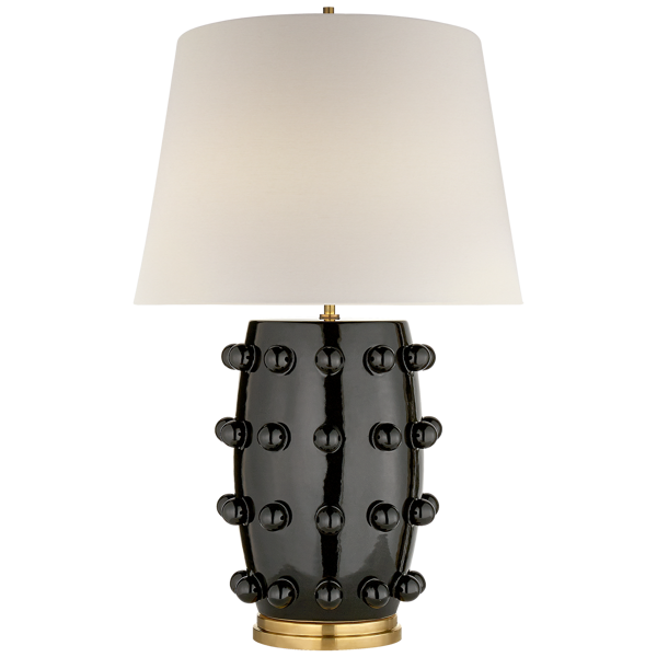 Lampa stołowa Linden projektu Kelly Wearstler została wykonana z porcelany w czarnym kolorze oraz wykończona jasnym abażurem. Lampa posiada gniazdo na żarówkę E 27.