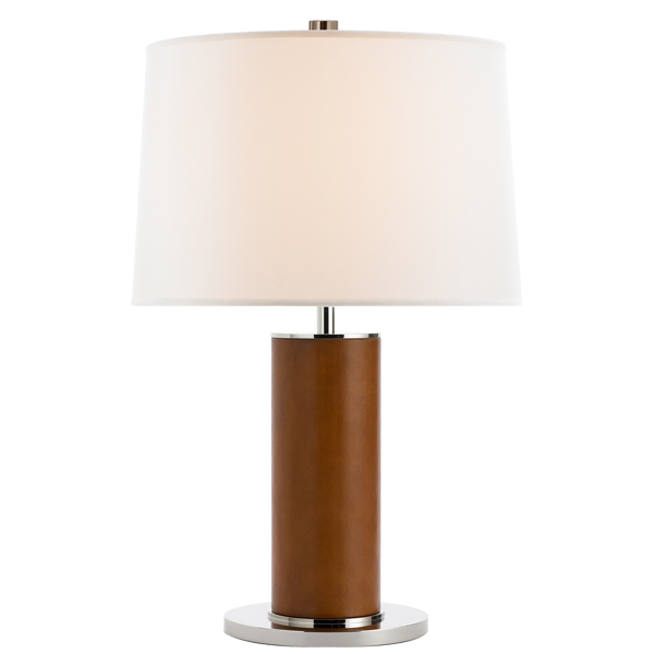 - Lampa stołowa Beckford projektu Ralph Lauren Home została wykonana z niklu polerowanego na wysoki połysk, naturalnej skóry w brązowym kolorze oraz wykończona jasnym abażurem. Lampa posiada gniazdo na żarówkę E 27.
