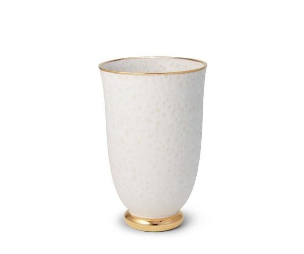 - Wazon Marion Tapered projektu Aerin został wykonany z ceramiki w białym kolorze oraz wykończony złotymi detalami.