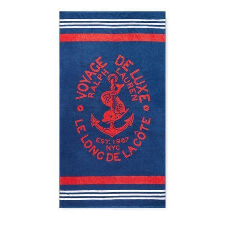 - Ręcznik plażowy Kacie firmy Ralph Lauren Home został wykonany z 100% bawełny oraz wykończony w granatowym kolorze z morskim motywem.