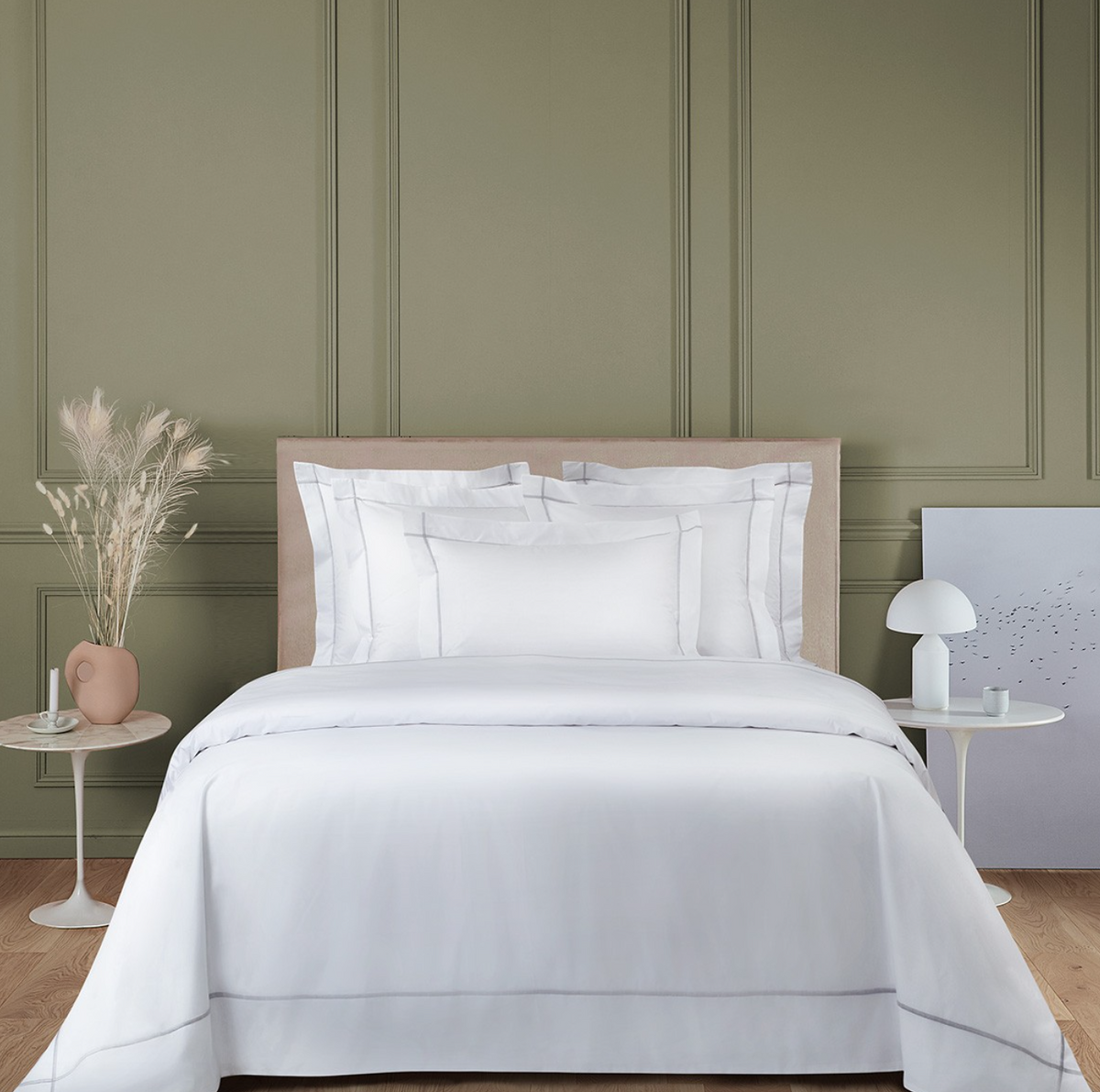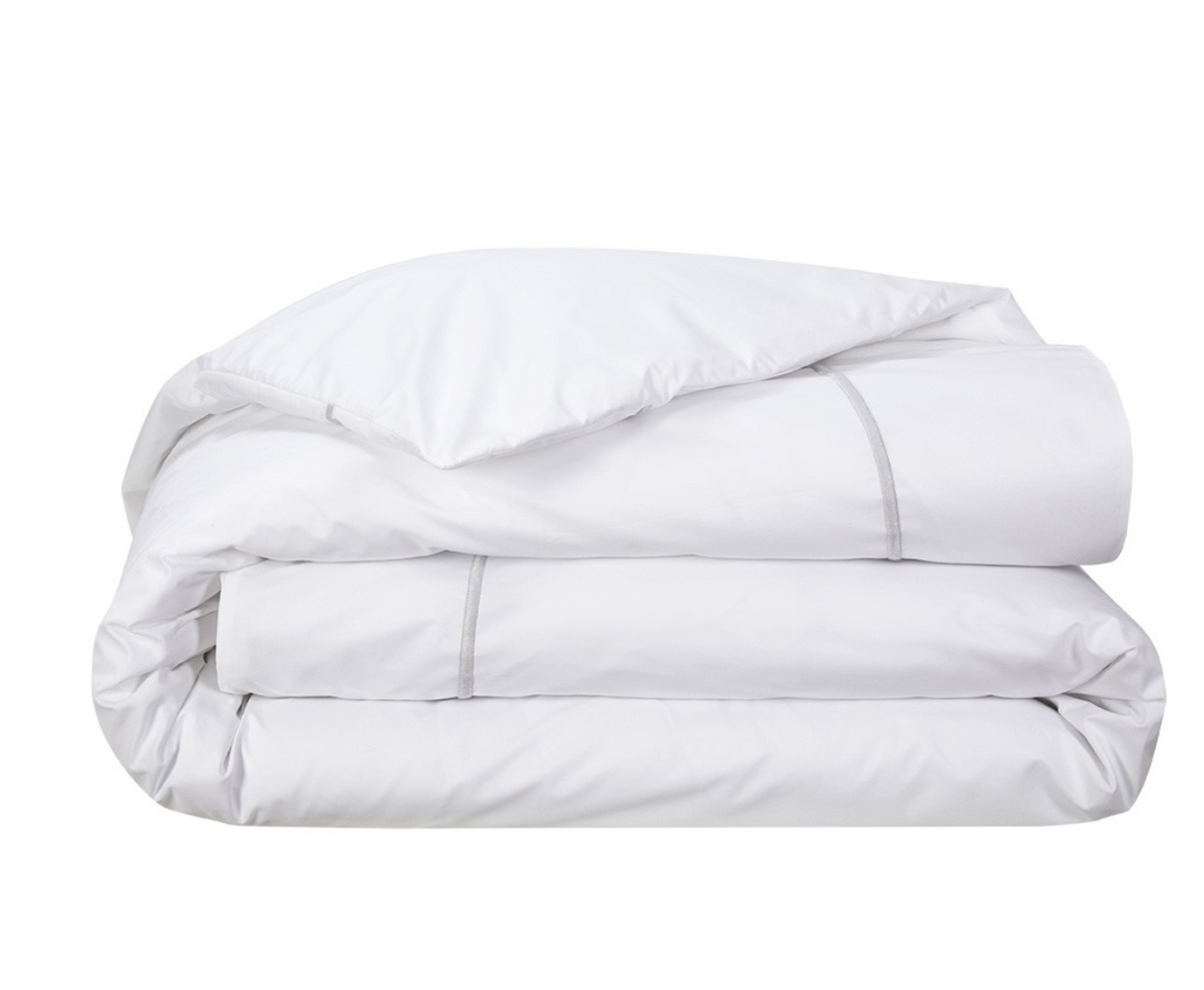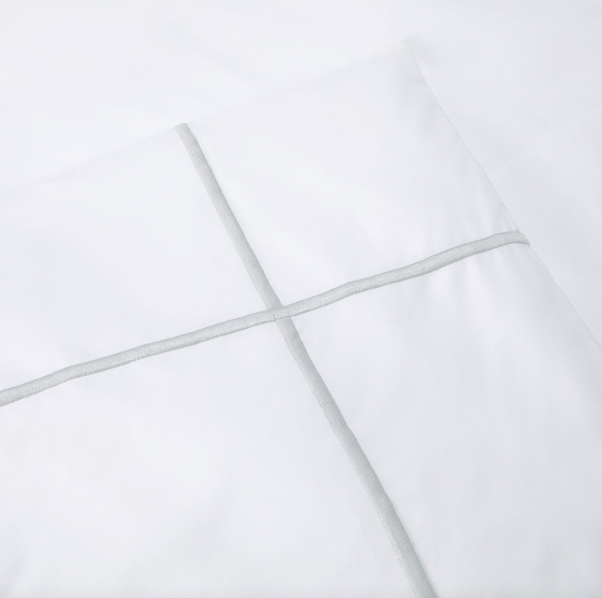 Poszewka na kołdrę firmy Yves Delorme, z kolekcji Athena została wykonana w 100% z bawełny egipskiej 500 nici/m2 oraz wykończona w białym kolorze z srebrnymi ściegami. Wymiary podane w centymetrach.